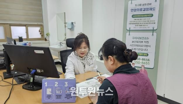 (원투원뉴스) 구리시는 구리시보건소가 시민이 삶의 마지막 순간까지 자기 뜻에 따라 존엄한 선택을 할 수 있도록 사전연명의료의향서 상담 및 등록 서비스를 2년 2개월째 운영하고 있다고 밝혔다.