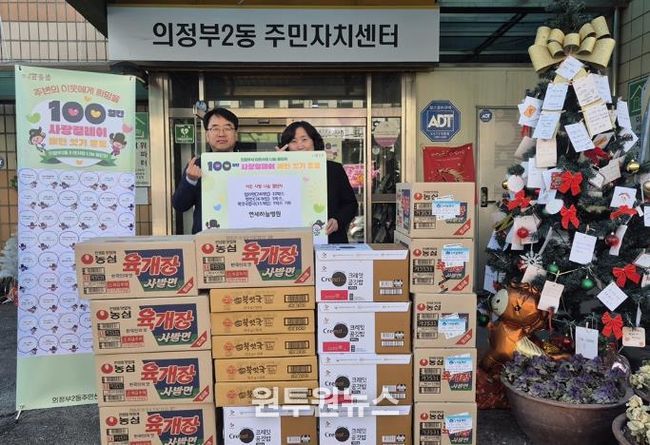 (원투원뉴스) 의정부시 의정부2동주민센터는 2월 9일 연세하늘병원이 ‘100일간 사랑릴레이 배턴 잇기’에 동참해 취약계층을 위한 식료품을 기부했다고 밝혔다.