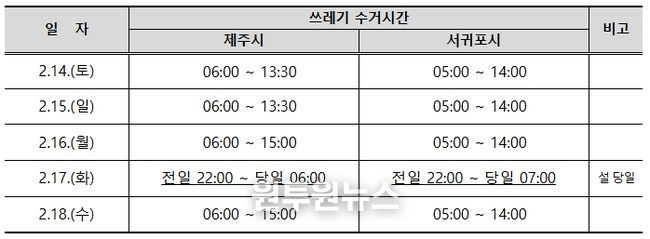 이와 함께 제주도는 연휴 기간 중 발생하는 쓰레기 관련 생활 민원에 신속히 대처하기 위해 ‘생활쓰레기 처리 종합상황실’도 운영한다.