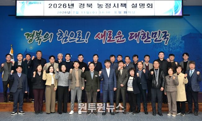 (원투원뉴스) 경상북도는 2월 11일 도청 화백당에서 시‧군 농정 부서장과 유관 기관 관계자 등 150여 명이 참석한 가운데 2026년 농정시책 설명회를 개최했다.
