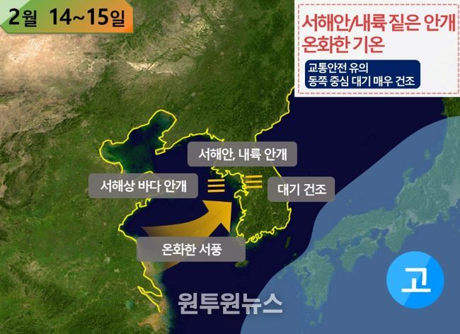 또한, 14일~15일 서해상에는 바다 안개가 짙게 끼는 곳이 있겠다고 예상했다.