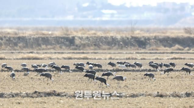 시는 지난 12일 국제적 보호종인 흑두루미의 안정적인 서식 환경 조성을 위해 먹이 8톤을 제공했다.