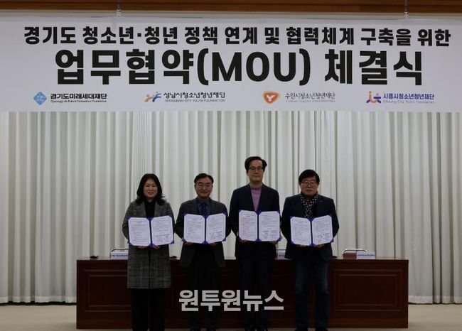 (원투원뉴스) 경기도미래세대재단은 12일 옛 경기도청사 신관 4층 대회의실에서 수원·성남·시흥시청소년청년재단과 ‘경기도 청년 정책 연계 및 협력체계 구축 업무협약’을 체결했다.