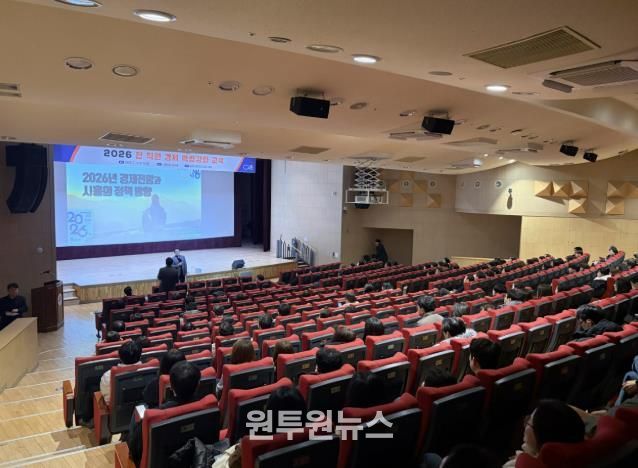 (원투원뉴스) 시흥시는 지난 2월 11일 시청 늠내홀에서 전 직원을 대상으로 ‘2026년 경제 전망과 시흥의 정책 방향’을 주제로 한 경제 특강을 진행했다.