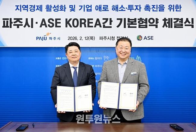 (원투원뉴스) 파주시는 기업 애로사항을 해소하고 지역 경제를 활성화하기 위해 문발2 산업단지 입주 기업인 에이에스이 코리아(ASE Korea)와 ‘폐수 연계 처리 협약’을 체결했다.