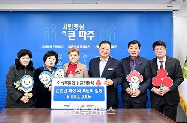 (원투원뉴스) 파주시는 11일 여성후원회로부터 관내 저소득 취약계층 지원을 위한 성금 500만 원을 기탁 받았다고 밝혔다.