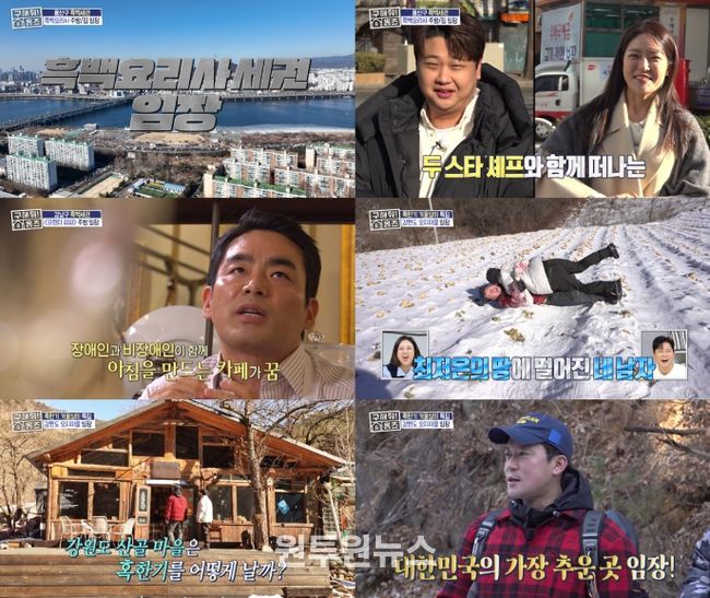 이어진 ‘강원도 혹한기’ 특집에서는 최저 기온 영하 10도, 체감 온도 영하 13도의 강추위 속에 강원도 정선의 오지마을로 임장을 떠났다. ‘자연파’ 김대호와 양세형, ‘도시파’ 양세찬과 안재현이 함께하며 극과극 찰떡 케미를 자랑했다. 이들은 혹한을 이겨내는 사람들의 일상을 오감으로 임장하고 왔다.