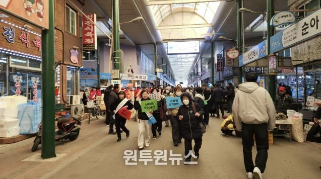 (원투원뉴스) 봉화군은 설 명절을 앞둔 2월 12일 봉화상설시장 일대에서 봉화군여성단체협의회 회원 40여명과 함께‘5대 폭력 예방 합동캠페인’을 진행했다. 지난 9일에는 억지춘양시장에서 첫 캠페인이 진행된 바 있으며, 이번 활동은 명절 기간 전통시장을 이용하는 주민들을 대상으로 맞춤형 홍보의 일환으로 기획됐다.