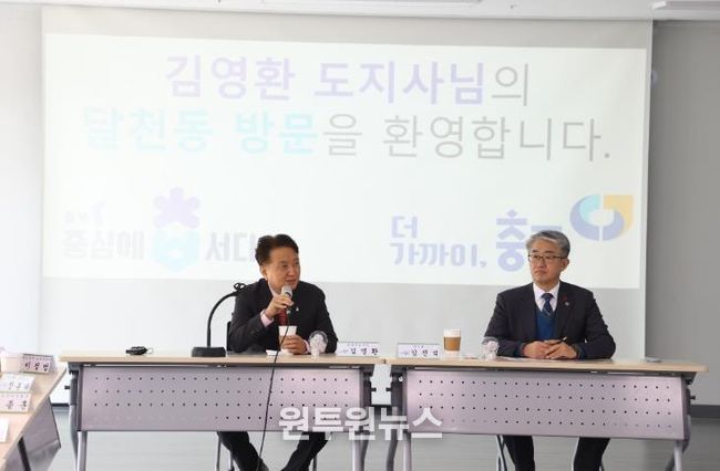 김 지사는 이날 통합돌봄 관계자와의 오찬간담회를 시작으로 달천동 행정복지센터를 방문해 생활 SOC사업 운영 현장을 확인하고 주민 주도의 도시재생 사업의 성과를 격려했다.