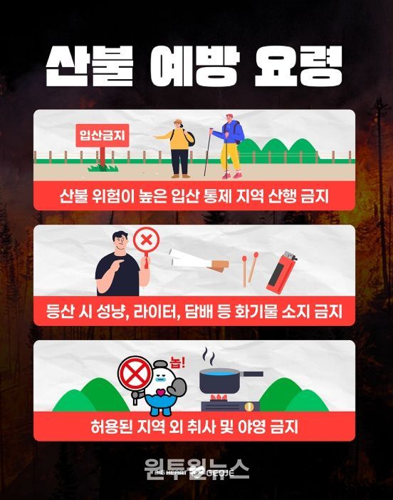 이와 함께 산림재난대응단과 산불감시원 등 가용 인력 약 180명을 활용해 산불 취약지역 순찰을 강화하고, 마을 방송과 차량 방송 등을 활용한 산불 예방 홍보 활동도 확대 추진할 예정이다.