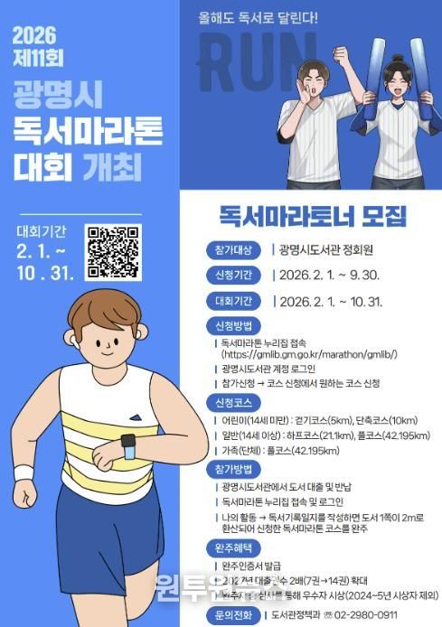 (원투원뉴스) 광명시가 시민 독서진흥과 일상 속 독서문화 정착을 위해 ‘2026년 제11회 광명시 독서마라톤 대회’를 개최한다고 20일 밝혔다.