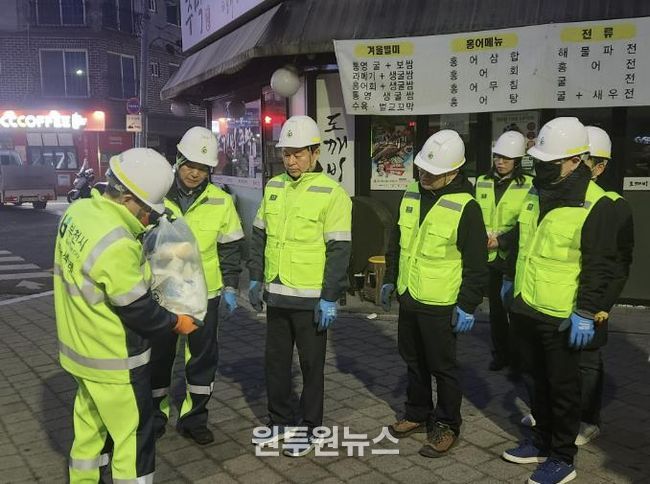 이날 조 시장은 현장 노동자들과 함께 쓰레기를 수거하며 작업 구간을 정비했다. 수거 지연이나 처리 공백이 발생하지 않도록 현장 운영 실태를 직접 점검하고, 인력·장비 운용 현황과 안전관리 체계도 세밀히 확인했다.