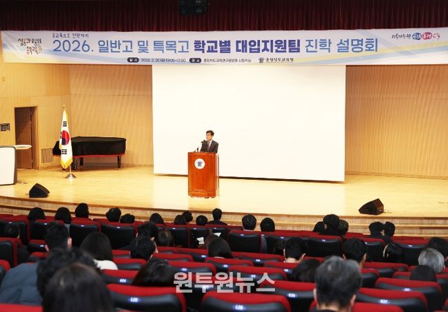 (원투원뉴스) 충청북도교육청은 20일, 교육연구정보원 시청각실에서 '2026. 일반고 및 특목고 학교별 대입지원팀 진학 설명회'를 실시했다고 밝혔다.