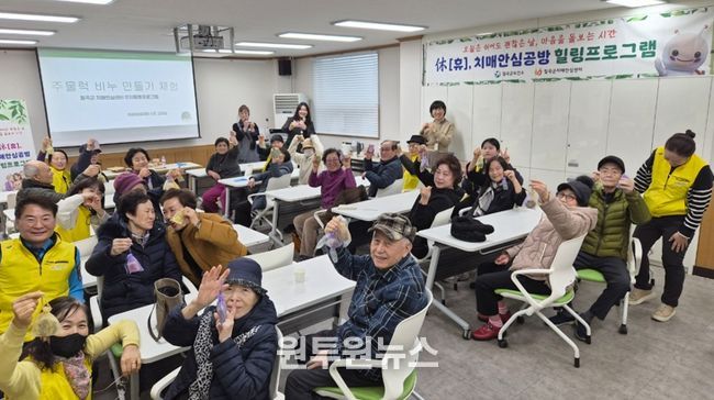 (원투원뉴스) 칠곡군보건소 치매안심센터와 약목단기쉼터는 2월 10일과 11일 양일간 경도인지장애 진단자와 치매환자, 가족 및 보호자 30명을 대상으로 ‘休[휴], 치매안심공방 힐링프로그램’을 운영했다.