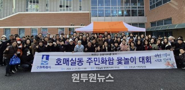 (원투원뉴스) 수원시 권선구 호매실동은 단체장협의회 주관으로 지난 21일 행정복지센터 주차장에서 정월대보름을 맞아 마을의 풍요와 안녕을 기원하는 ‘2026년 호매실동 주민화합 윷놀이 대회’를 성황리에 개최했다.
