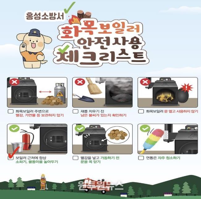 이에 홍성소방서는 ▲보일러 주변 2m 이내 가연물 제거 ▲연통 이음부 균열·이탈 여부 수시 확인 ▲과도한 장작 투입 금지 ▲보일러실 내 소화기 비치 등을 중점적으로 안내했다. 또한 장작 투입 시 문을 급하게 열거나 닫지 말고 천천히 개폐해 불티 비산을 방지해야 하며, 장작 보관 장소와 보일러실은 충분한 안전거리를 유지해야 한다고 강조했다.