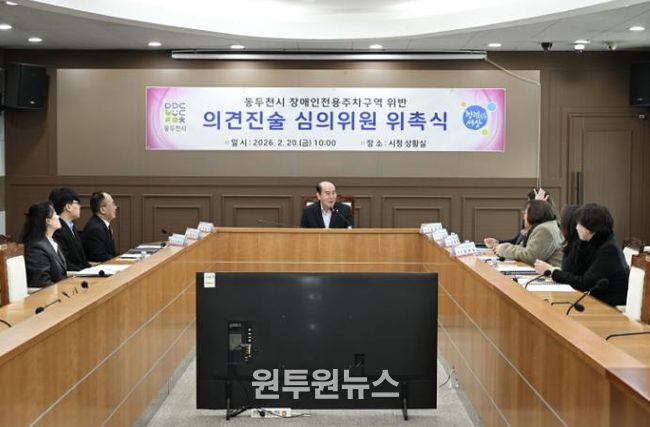 (원투원뉴스) 동두천시는 2월 20일 시청 상황실에서‘장애인주차구역 위반 의견진술심의위원회’신규 위원 위촉식을 개최했다.