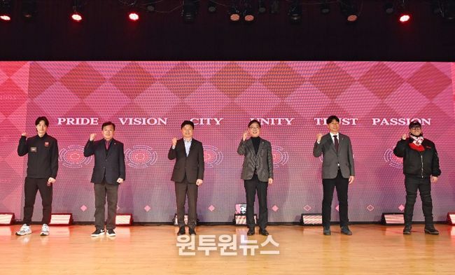 (원투원뉴스) 부천FC1995가 22일 부천시청에서 2026시즌 출정식을 열고 창단 첫 K리그1 시즌을 앞둔 각오를 시민들과 함께 다졌다. 부천시는 오는 3월 1일 K리그1 개막전을 치르는 구단이 1부리그에서 당당히 경쟁할 수 있도록 지원하는 동시에, 경기 관람과 문화 체험, 소비가 이어지는 ‘스포츠 기반 지역경제 활성화’를 본격화할 계획이다.