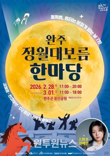 (원투원뉴스) 완주문화재단(이사장 유희태)은 오는 2월28일부터 3월 1일까지 완주군 둔산공원 일원에서 2026 완주 정월대보름 한마당을 개최한다.
