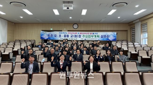 (원투원뉴스) 평창교육지원청은 2월 23일, 평창교육지원청에서 유·초·중등 교(원)장 및 교육 관계자들을 대상으로 ‘2026학년도 주요업무계획 설명회’를 개최했다.