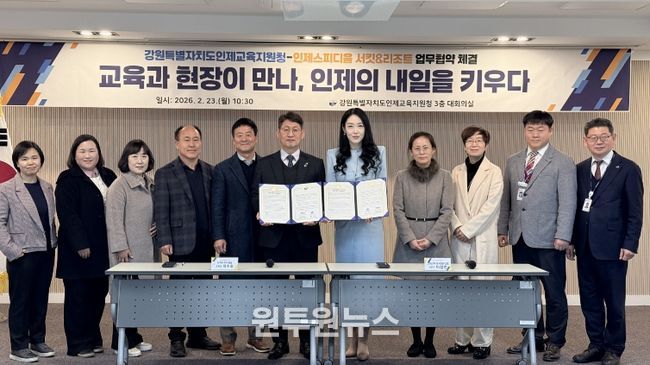 최수호 교육장은 “이번 협약은 학교와 지역사회, 산업 현장이 함께 만드는 인제형 교육 협력의 의미 있는 출발점”이라며 “앞으로도 지역과 연계한 다양한 교육 주체들과 협력하여 학생들이 미래 역량을 키울 수 있는 교육 환경을지속적으로 확장해 나가겠다”고 밝혔다.