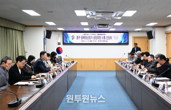 (원투원뉴스) 대전 중구는 23일 중회의실에서 골목형상점가 상인회장 및 지정 추진 상점가 대표 등 17명이 참여한 상권 활성화 소통 간담회를 개최했다.