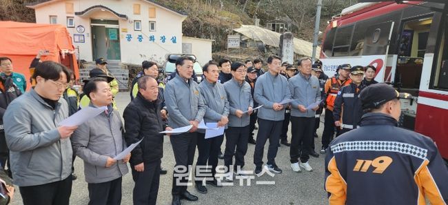 현장에 투입된 소방대원들을 격려하고 장시간 진화 작업에 따른 안전관리 실태와 장비·급식·휴식 지원 상황 등을 점검했으며, 특히 민가 보호와 추가 피해 방지를 위한 선제적 대응과 장기화에 대비한 인력·장비 운영에도 만전을 기해야 한다고 강조했다.