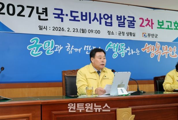 (원투원뉴스) 무안군은 23일 간부공무원들이 참석한 가운데 2027년도 국·도비 지원 건의사업 발굴 보고회를 개최했다고 밝혔다.