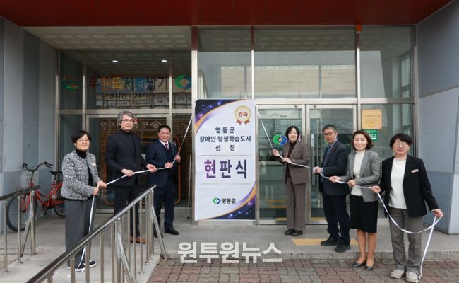 (원투원뉴스) 충북 영동군은 23일 오후 평생학습관(레인보우영동도서관)에서 ‘2025년 장애인 평생학습도시 지정’ 현판식을 개최했다.