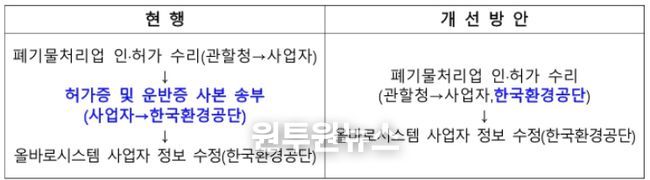 그동안 폐기물처리업 인허가(변경)가 이루어질 경우, 사업자가 직접 허가증 사본을 한국환경공단에 제출해 올바로시스템 변경을 요청해야 하는 번거로운 절차가 있었으며, 이로 인해 폐기물 처리 지연이나 정보 불일치 등의 문제가 발생하기도 했다.