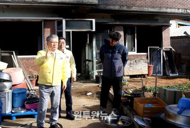 (원투원뉴스) 영광군은 지난 23일 발생한 주택화재로 피해를 입은 영광읍 연성리 가정을 방문해 구호물품을 전달하고 위로의 뜻을 전했다.