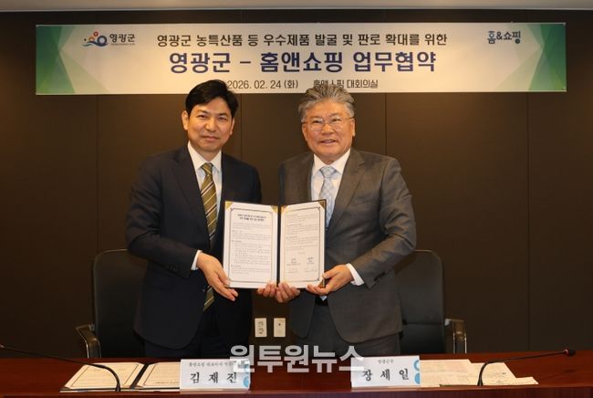 (원투원뉴스) 영광군은 지난 24일 ㈜홈앤쇼핑과 영광군의 우수 농특산물 판로 확대와 중소기업·소상공인 우수제품 발굴을 위한 업무협약(MOU)을 체결했다.