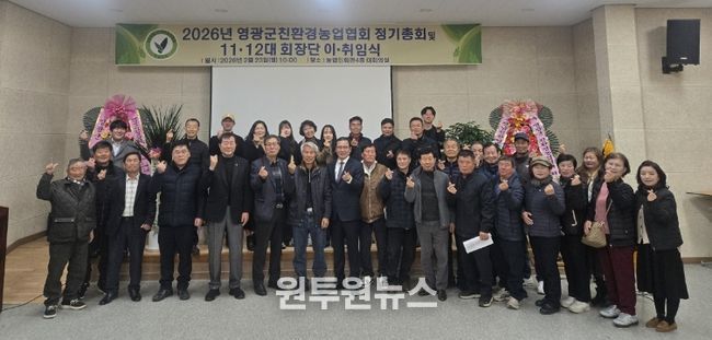 (원투원뉴스) 영광군은 지난 23일 영광군농업인회관 대회의실에서 영광군친환경농업협회 정기총회 및 11․12대 회장 이취임식이 진행됐다고 밝혔다.