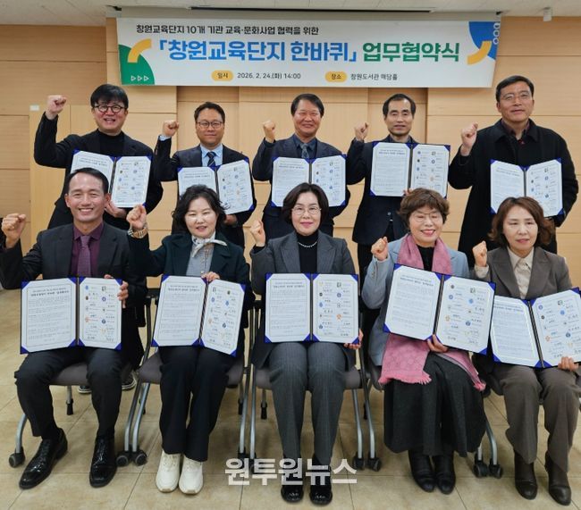 (원투원뉴스) 경상남도교육청 창원도서관은 24일 창원도서관 해담홀에서 창원교육단지 내 10개 교육기관장이 참석한 가운데, 단지 조성 이래 50년 만에 처음으로 지역사회 교육공동체 실현을 위한 '창원교육단지 한바퀴' 업무협약을 체결했다.