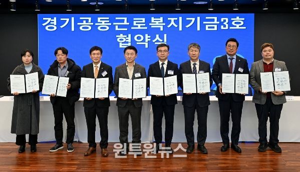 (원투원뉴스) 의정부시는 2월 24일 의정부문화역 이음에서 경기도, 고용노동부 의정부지청, 경기북부상공회의소 및 참여 기업 노‧사 대표 등 60여 명이 참석한 가운데 ‘경기공동근로복지기금 3호’ 조성을 위한 업무협약을 체결했다.