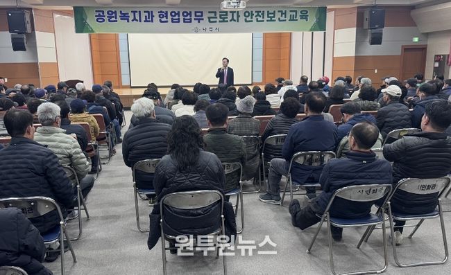 (원투원뉴스) 전남 나주시는 24일 나주시민회관에서 산림·녹지 분야 기간제근로자 150여 명을 대상으로 채용 전 안전보건교육을 실시했다.