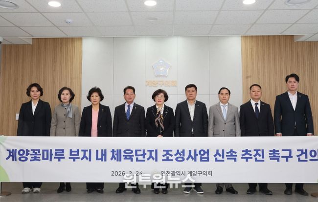 (원투원뉴스) 인천광역시 계양구의회 조양희 의원(더불어민주당, 다 선거구)이 대표 발의한 '계양꽃마루 부지 내 체육단지 조성사업 신속 추진 촉구 건의안'이 제264회 임시회 제1차 본회의에서 채택됐다.