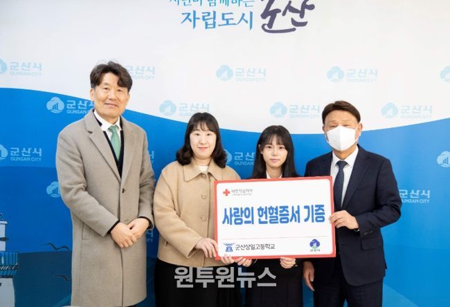 이번 전달은 군산상일고등학교 학생들이 자발적인 헌혈 활동을 통해 모은 헌혈증을 지역사회에 기부하면서 이뤄졌다.