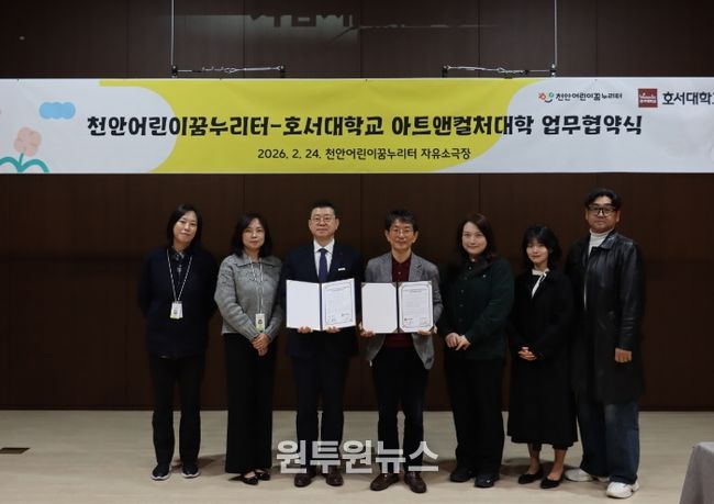 (원투원뉴스) 천안어린이꿈누리터와 호서대학교 아트앤컬처대학이 아동의 문화예술 향유 기회를 확대하고, 지역 공연 활성화를 위한 협력 체계를 구축했다.