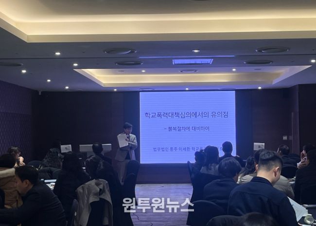 수원교육지원청은 이날 ‘2026년 학교폭력대책심의위원회 역량강화 연수’를 개최했으며, 연수의 주요 내용은 ▶학교폭력예방법에 대한 법률적 이해 ▶학교폭력대책심의위원회의 역할과 심의 절차 ▶조치 불복사례 분석 ▶Case-Study를 통한 모의상황 등을 다뤘다. 이를 통해 심의위원회의 공정한 사안 판단과 대응 역량을 높이는 데 중점을 두었다.