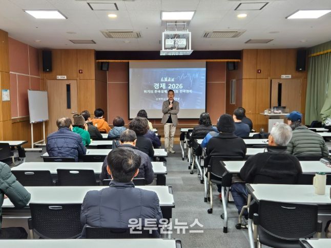 퇴직자 및 지역 주민 40여 명이 참가한 가운데 2026년 주요 경제 전망과 주민들이 꼭 알아야 할 재테크 전략에 대한 주제로 진행됐다.