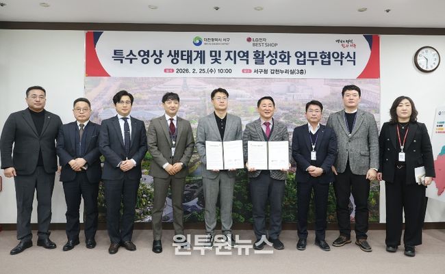 (원투원뉴스) 대전 서구는 25일 구청 갑천누리실에서 LG전자 베스트샵 대전본점과 ‘특수영상 생태계 및 지역 활성화 업무협약(MOU)’을 체결했다.
