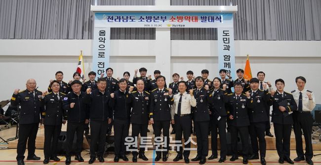 (원투원뉴스) 전라남도소방본부(본부장 최민철)가 2월 25일 장흥소방서 대강당에서 ‘전남소방악대’ 발대식을 갖고, 음악을 통한 도민 안전 문화 확산과 소통 행보를 본격화했다.