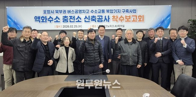 (원투원뉴스) 포항시는 25일 포항테크노파크 회의실에서 관계 부서 및 시공사 등 20여 명이 참석한 가운데 액화수소충전소 신축공사 착수보고회를 개최했다.