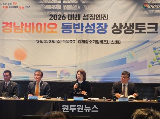 (원투원뉴스) 경상남도는 25일 김해중소기업비즈니스센터에서 동부경남(김해·양산)지역 바이오기업인들과 함께 ‘2026 미래 성장엔진 경남바이오 동반성장 상생토크’를 개최했다.