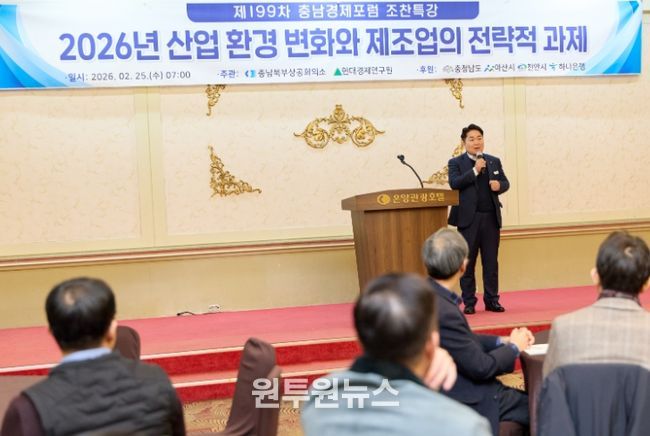 이날 포럼에는 지역 경제인 120여 명이 참석한 가운데, 산업연구원 조철 연구위원이 ‘2026년 산업 환경 변화와 제조업의 전략적 과제’를 주제로 강연했다.