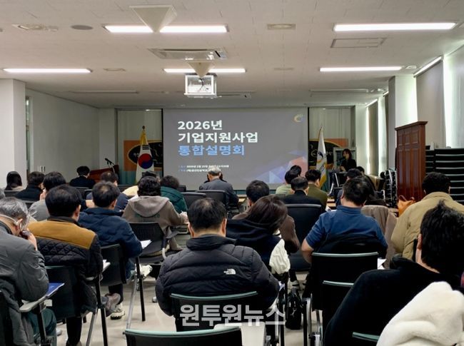 (원투원뉴스) (재)금산인삼약초산업진흥원은 지난 25일 금산 관내 인삼·약초 제조가공업체 및 생산자단체 등을 대상으로 2026년 기업 지원사업 통합설명회를 개최했다.