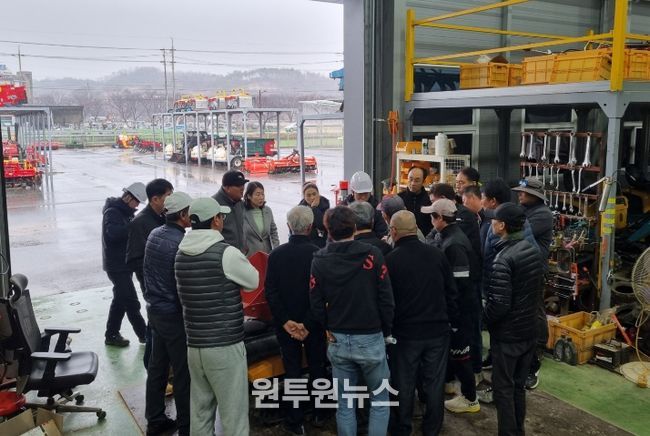 (원투원뉴스) 청도군 농업기술센터는 지난 2월 24일 농기계임대사업소 산서분소(풍각면)에서 관계 공무원 및 영농부산물 파쇄단 등 30명이 참석한 가운데 '영농부산물 안전처리지원사업'의 일환으로 목재파쇄기 안전사용 현장시연회를 실시했다.