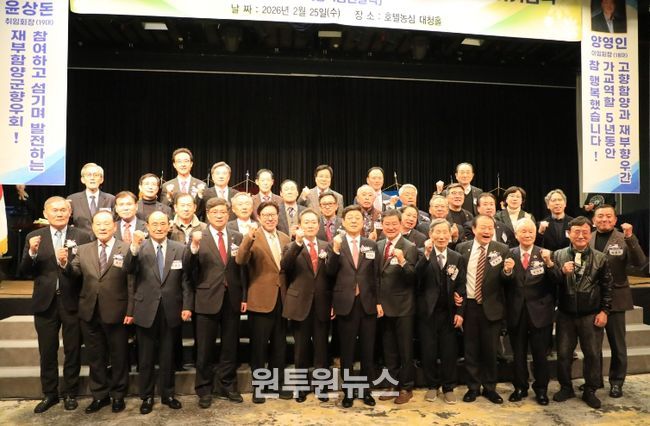(원투원뉴스) 재부산 함양군향우회(회장 윤상돈)는 25일일 오후, 부산 동래구에 있는 허심청 대청홀에서 ‘재부산함양군향우회 제40차 정기총회 및 회장 이취임식’을 성황리에 개최하며 회원 간 화합과 결속을 다졌다.