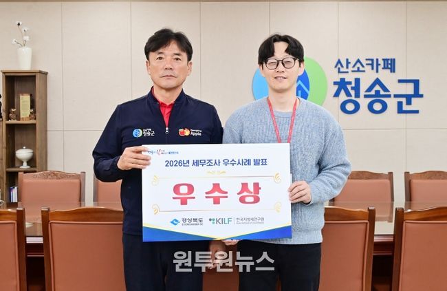 (원투원뉴스) 청송군은 지난 11일 경주시에서 열린 ‘2026년 세무조사 우수사례 발표대회’에서 우수상을 수상했다고 전했다.